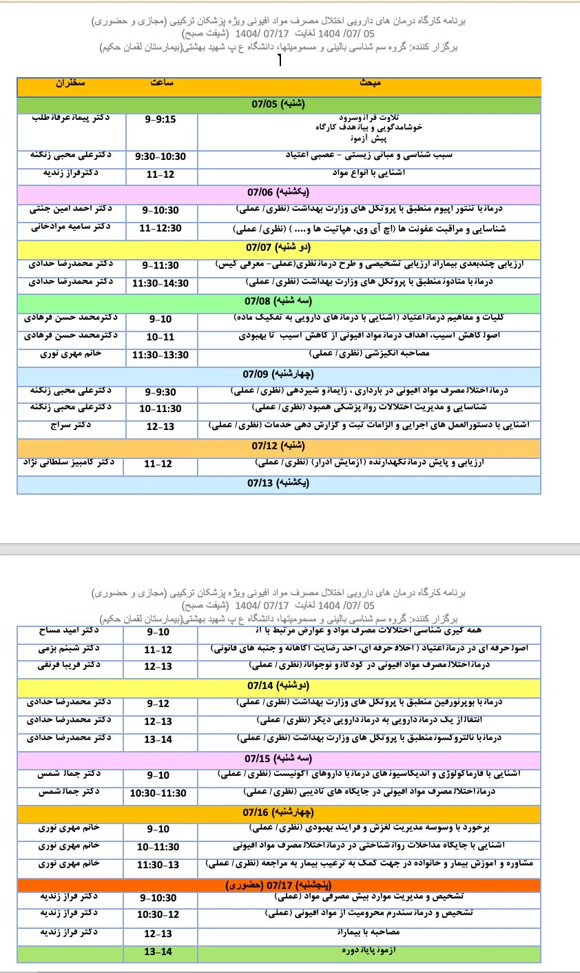 لطفا توجه کنید که در سری جدید این برنامهها، کلاسها به مدت ۳۶ ساعت به صورت ترکیبی (مجازی) برگزار میشود و آزمون نهایی به صورت حضوری در بیمارستان لقمان تهران برگزار میگردد. بخش کلاس حضوری و آزمون نهایی بهگونهای تنظیم خواهد شد که در روز پنجشنبه برگزار شود تا از دیگر استانها امکان حضور همکاران فراهم باشد.