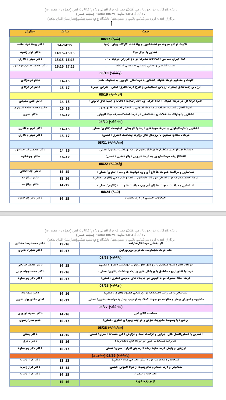 -- ساعت شروع کلاسهای شیفت عصر از ساعت 14 میباشد. حضور راس ساعت الزامی است و شرکتکنندگان باید تا پایان برنامه آموزشی در کلاس حضور فعال داشته باشند.
