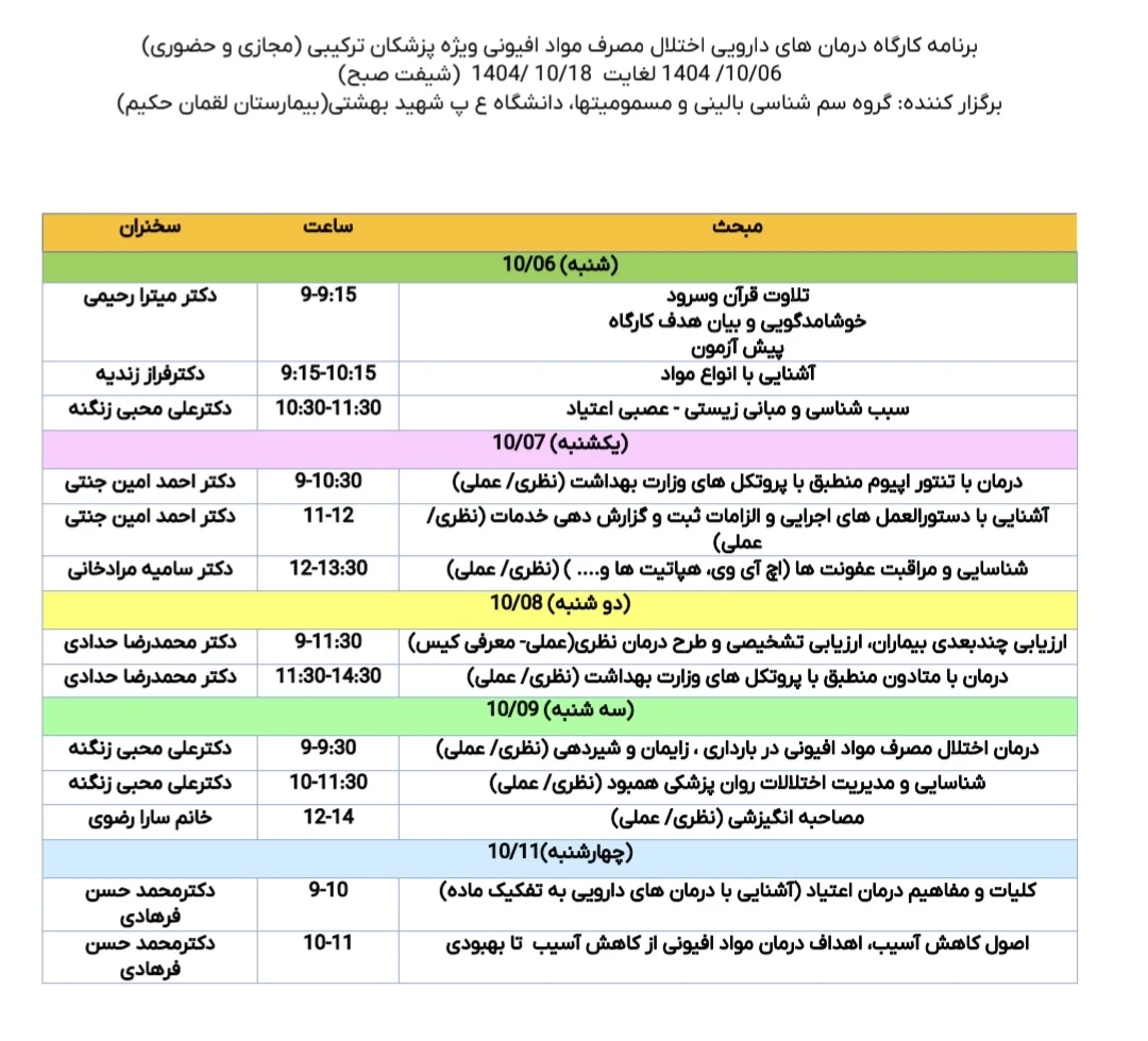 این برنامهها با اخذ مجوز از معاونت درمان وزارت بهداشت و با هماهنگی معاونت درمان دانشگاه علوم پزشکی شهید بهشتی برگزار خواهد شد.